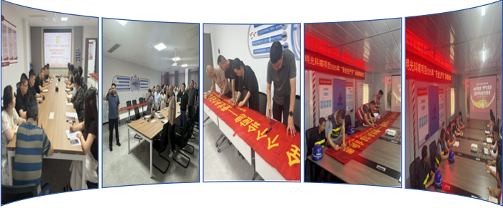 活動伊始,公路公司在機關及項目現(xiàn)場打造沉浸式安全文化長廊,以漫畫、案例圖解等形式普及安全知識;召開動員大會,主會場與各項目分會場實時聯(lián)動,公司經理現(xiàn)場部署安全重點工作。同時,組織全員觀看安全生產警示片,開展集體安全宣誓、橫幅簽名活動,以儀式感推動安全理念入腦入心。