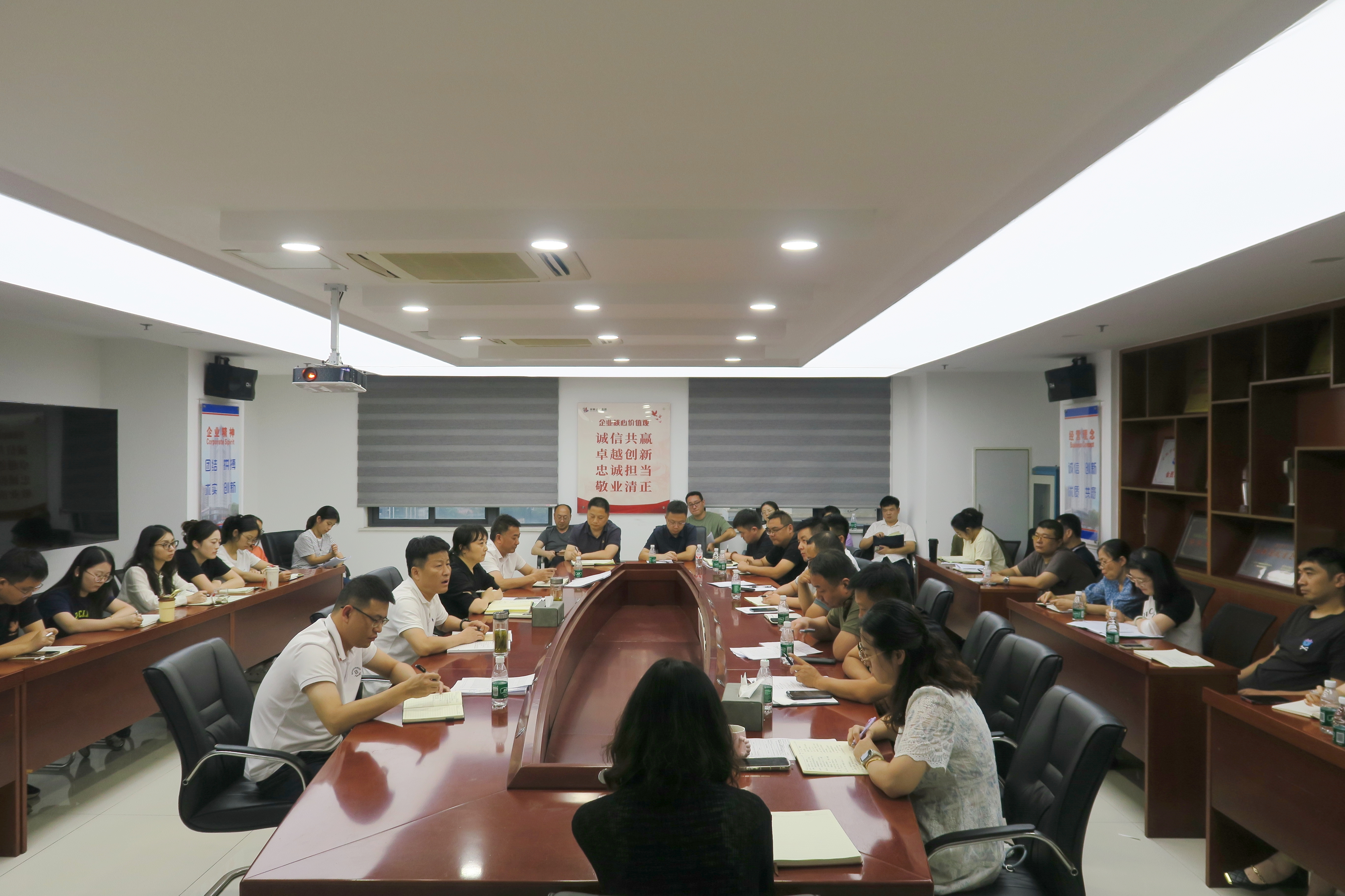 會議傳達(dá)學(xué)習(xí)了集團(tuán)及公司近期有關(guān)工作會議精神,綜合辦公室對督辦事項(xiàng)進(jìn)展情況進(jìn)行通報(bào),所屬各項(xiàng)目部、機(jī)關(guān)各部門就工作完成情況及下一步工作計(jì)劃進(jìn)行匯報(bào)。會上針對下半年生產(chǎn)經(jīng)營重點(diǎn)工作進(jìn)行研究部署。