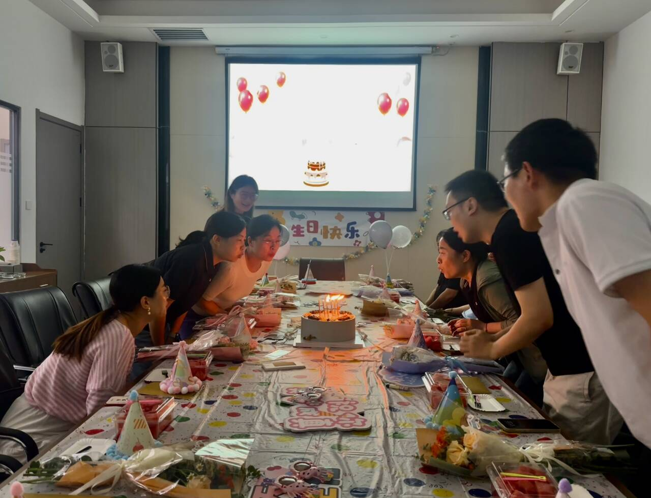 下午5點,隨著三季度“壽星”們笑容滿面地陸續(xù)來到會議室,生日會的溫馨序曲正式奏響——工會工作人員為每位到場的“壽星”遞上印有手寫祝福的生日賀卡,隨著“祝你生日快樂···”音樂響起,大家圍在一起吹蠟燭、吃蛋糕、送生日祝福,現(xiàn)場氣氛熱烈,充滿了歡聲笑語。